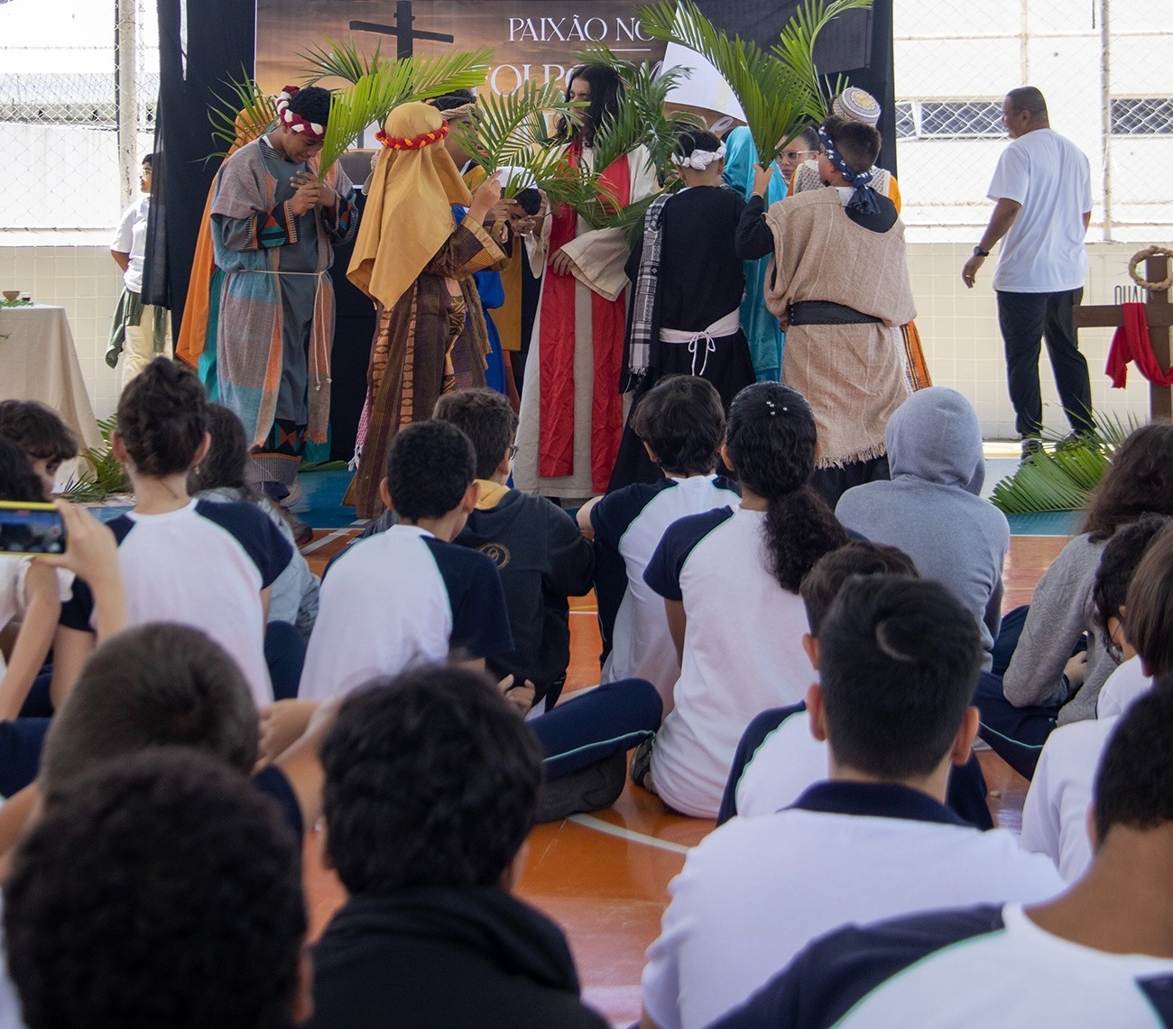 A encenação da Paixão de Cristo foi adaptada pela professora de teatro Raissa Celine, a partir do texto ‘O amor que nos deu a vida’, do escritor Antero Reis. “Tudo foi produzido com muito amor, dedicação e acima de tudo planejamento com toda a equipe do Colégio e o apoio dos alunos. Criamos as falas, os cenários, escolhemos as músicas, os figurinos. Cada etapa teve a devida atenção para que, ao final, o espetáculo fosse um sucesso”, conta.