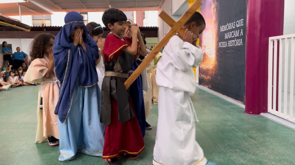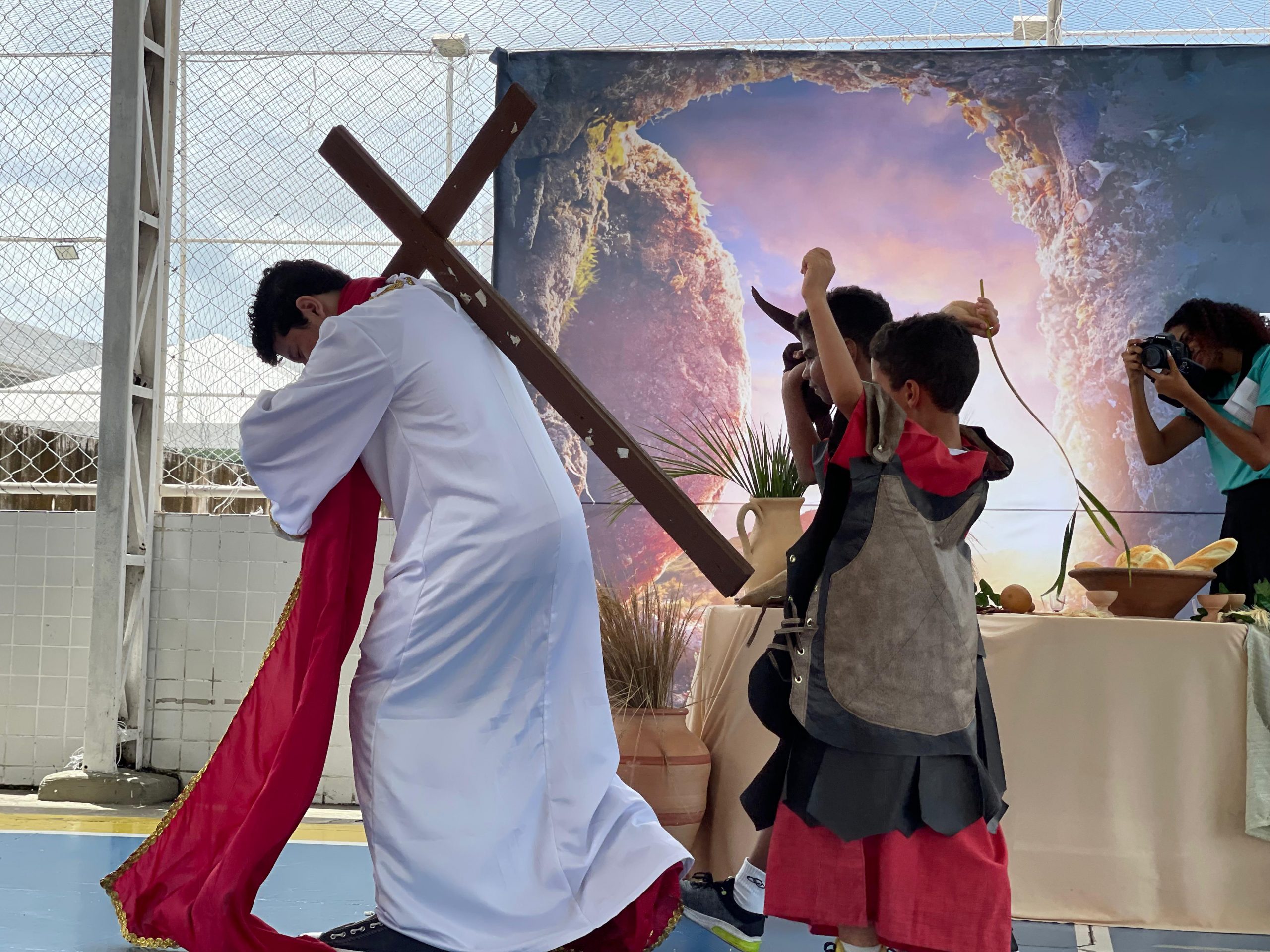 O Colégio Vila promoveu, durante a Semana Santa, um evento singular denominado “Paixão no Vila”, com o objetivo de ensinar e fomentar os valores cristãos essenciais, como a bondade e o amor. Direcionado aos alunos das três unidades da rede de ensino, essa iniciativa lúdica e interativa desvendou o significado autêntico da Páscoa.