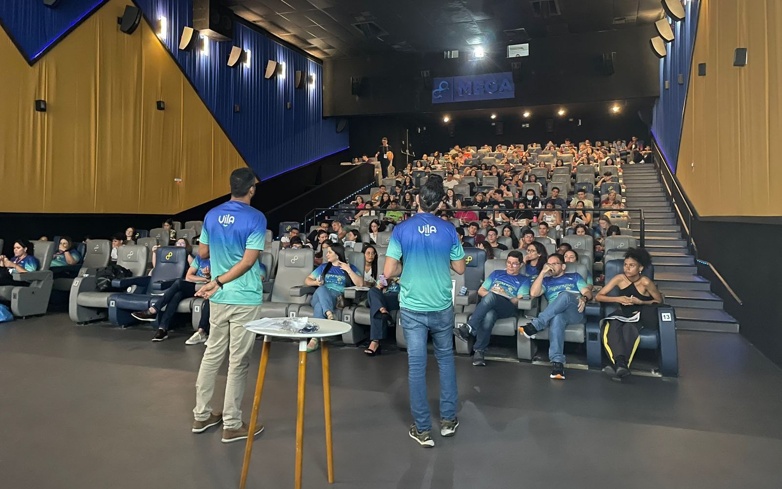 No último sábado, 28 de outubro, o Colégio Vila promoveu um evento educacional de grande relevância para seus alunos e demais estudantes inscritos no projeto, que estão se preparando para o Exame Nacional do Ensino Médio (Enem). O Aulão #PartiuENEM ocorreu no cinema do MAG Shopping, onde cada estudante recebeu dois cadernos de revisão, um para o período da manhã e outro para a tarde.